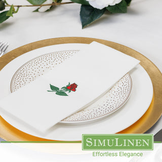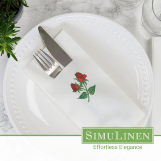 17″X17″ SimuLinen Premium Cloth-like Dinner Napkin with Rose Design & Discreet Pocket