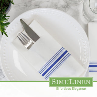 17″X17″ SimuLinen Premium Cloth-like Dinner Napkin with BLUE BISTRO STRIPE & Discreet Pocket