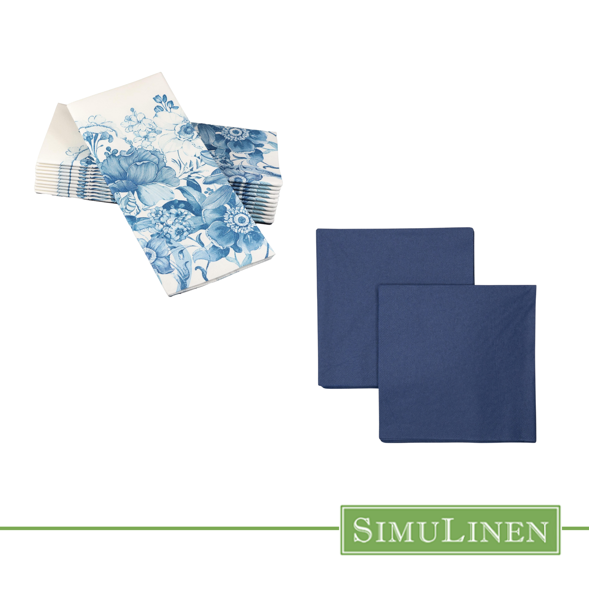 This comprehensive bundle delivers everything you need for sophisticated holiday entertaining. You'll receive 60 of our Blue Garden dinner napkins that are perfect for hosting and adding a beautiful pop of blue to complement your holiday décor. Paired with two 30-count packs of Simplicity dark blue napkins, adding an elegant neutral accent to your seasonal décor. This curated collection ensures you're well-stocked for holiday gatherings, dinner parties, and special events throughout the season.