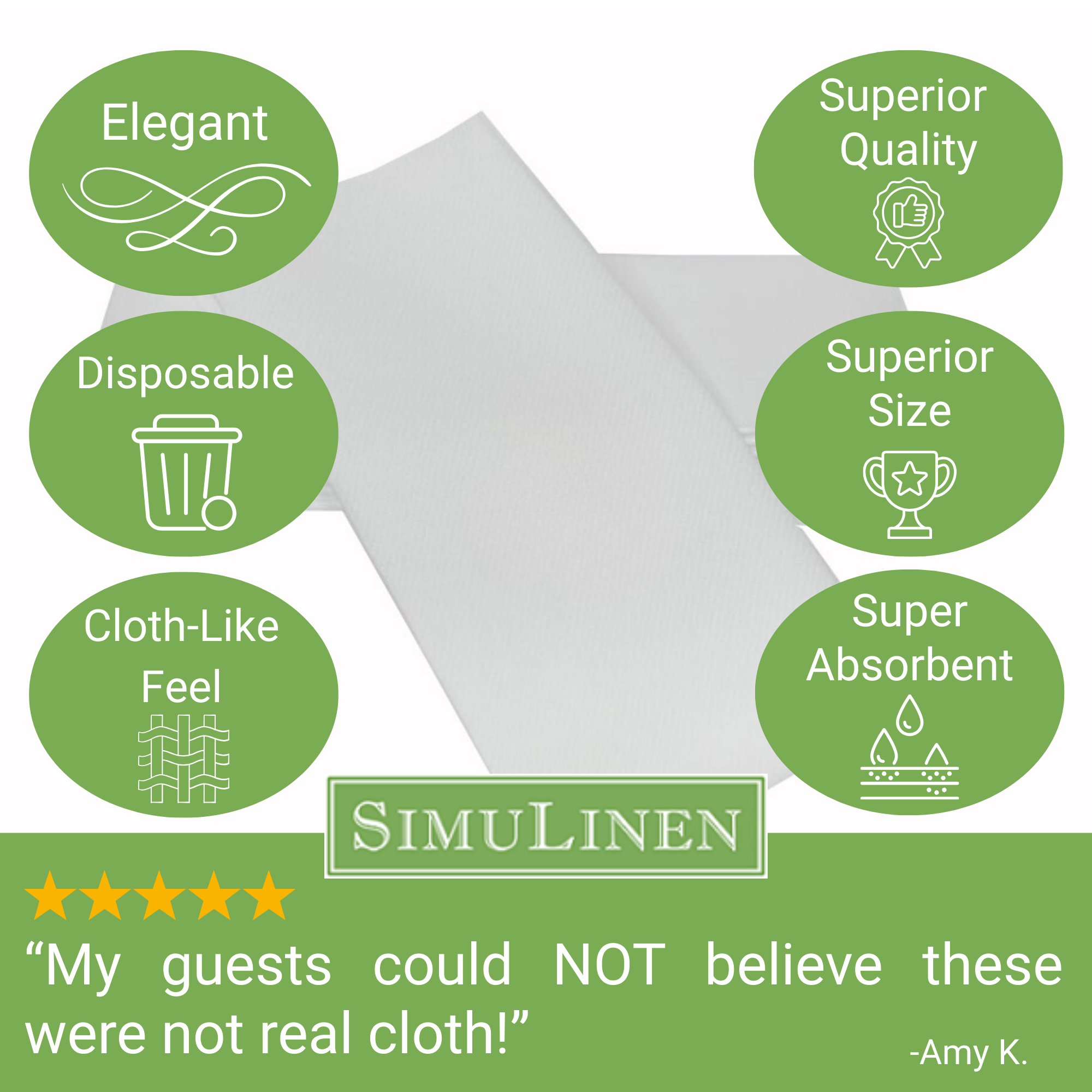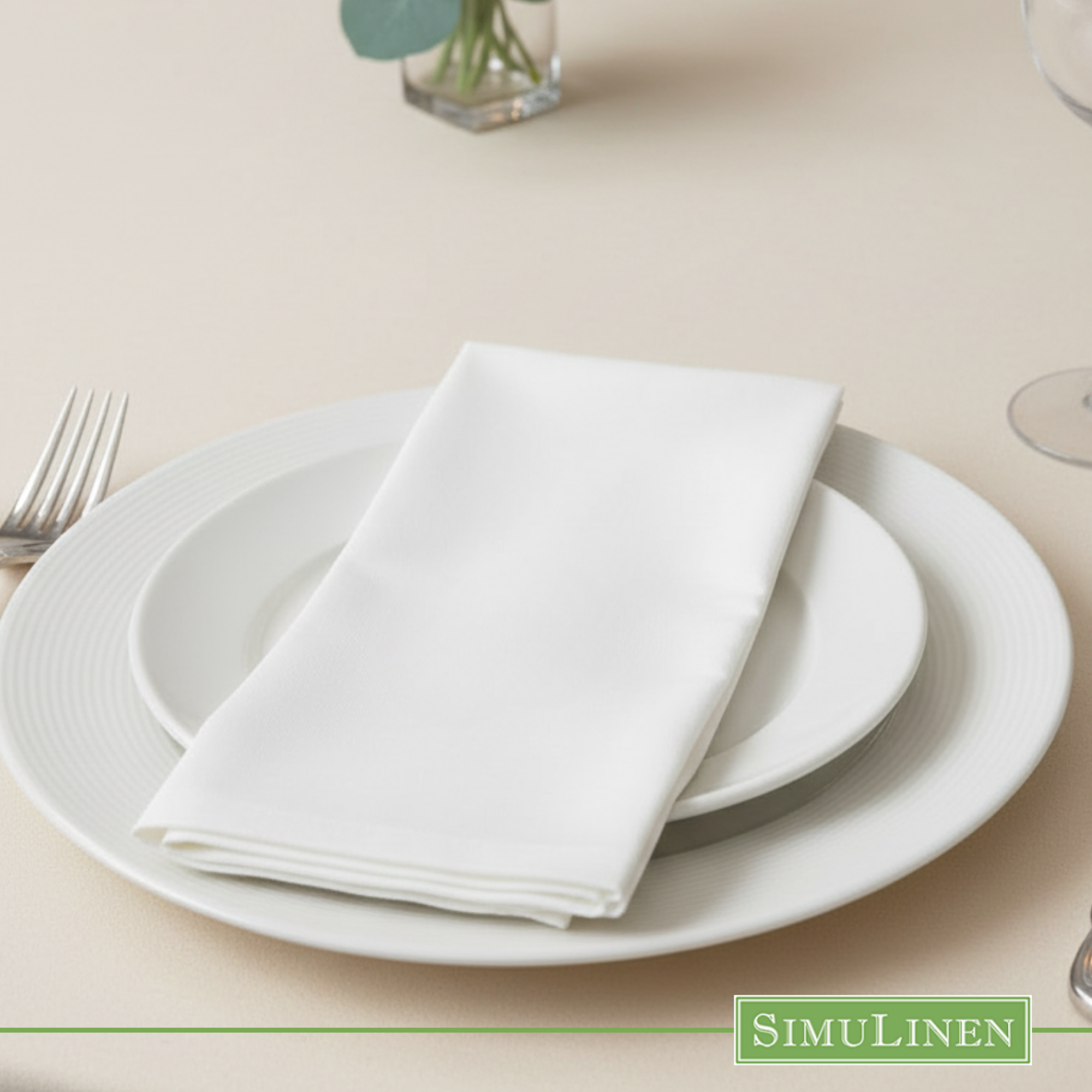 19"x17" SimuLinen Signature White Dinner Napkin